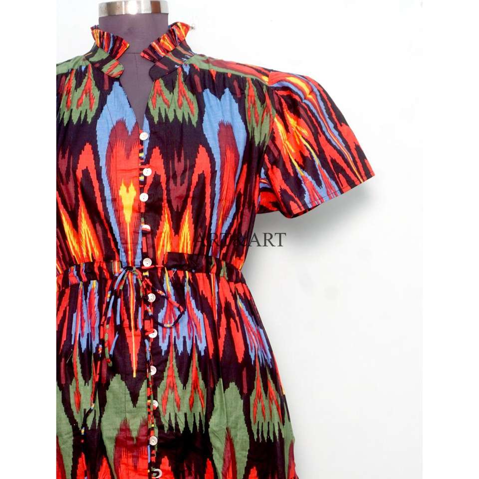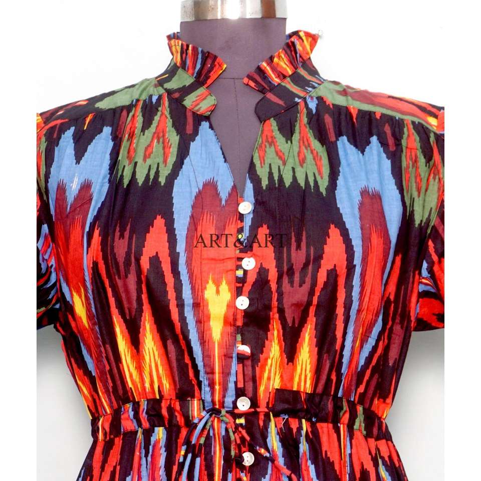 Robe d'été mi-longue pour femme, style unique, en coton doux et lisse de qualité supérieure, à manches courtes, coupe trapèze élégante et décontractée