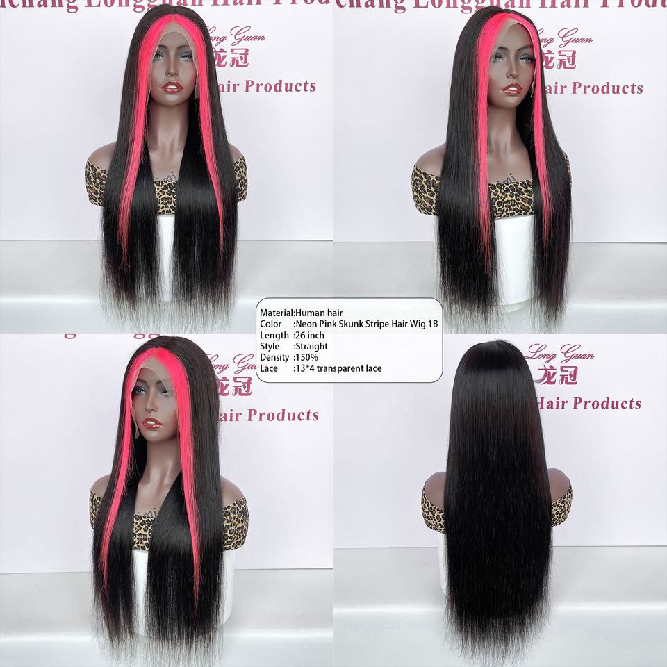 Numéro de Type:Neon Pink Skunk Stripe 1B-STW-26inch-13X4-150%Dens