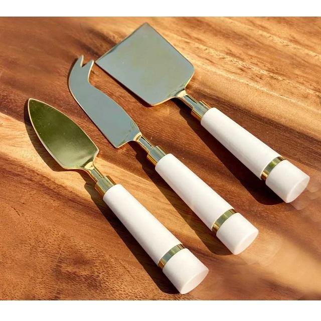 Ensemble de couteaux à fromage en plaqué or PVD de style unique avec poignée en résine de style créatif, spatule à pointe en métal, ensemble de couteaux à fromage, ustensiles de cuisine