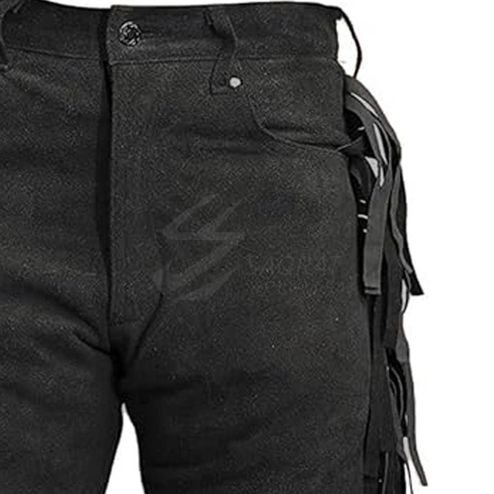Vente en gros de pantalons pour hommes de style unique en ligne, pantalons en cuir suédé à franges lavés et personnalisés pour votre propre conception