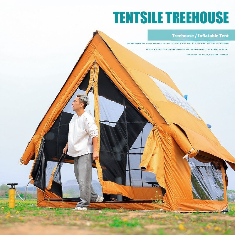 Tente gonflable Oxford au design unique de cabane dans les arbres, pour 6 à 10 personnes, camping familial, imperméable, résistante au vent, installation rapide, fenêtres à blocs de couleur
