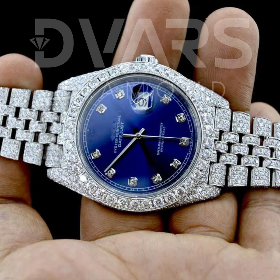 Montre-bracelet unique unisexe Hip Hop en acier inoxydable couleur or blanc, analogique, mécanique ETA, entièrement sertie de diamants en moissanite