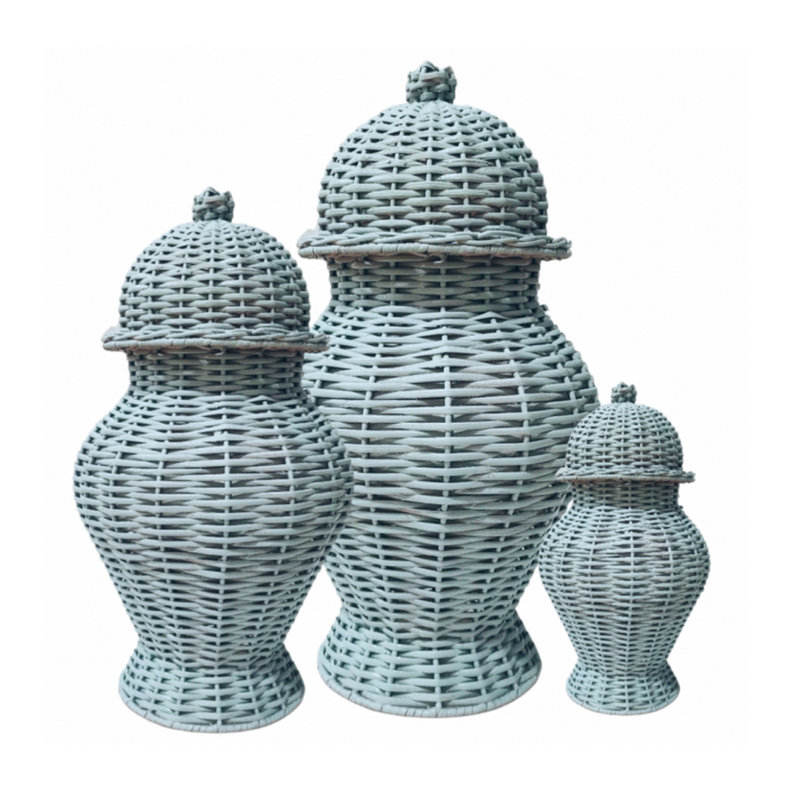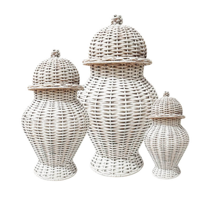 Pot de gingembre en osier unique avec des accents de bambou Pièce décorative pour la maison