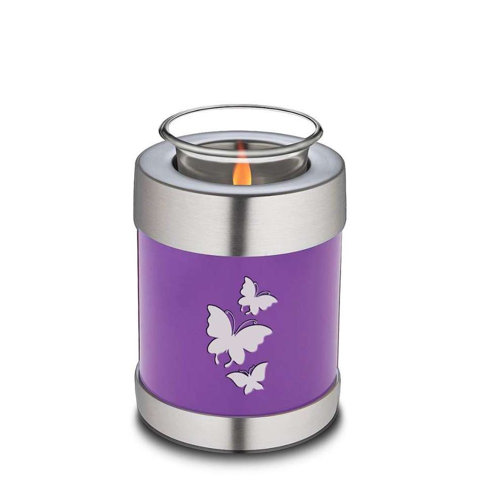 Urne funéraire papillons violets photophore unique et d'excellente qualité pour les cendres