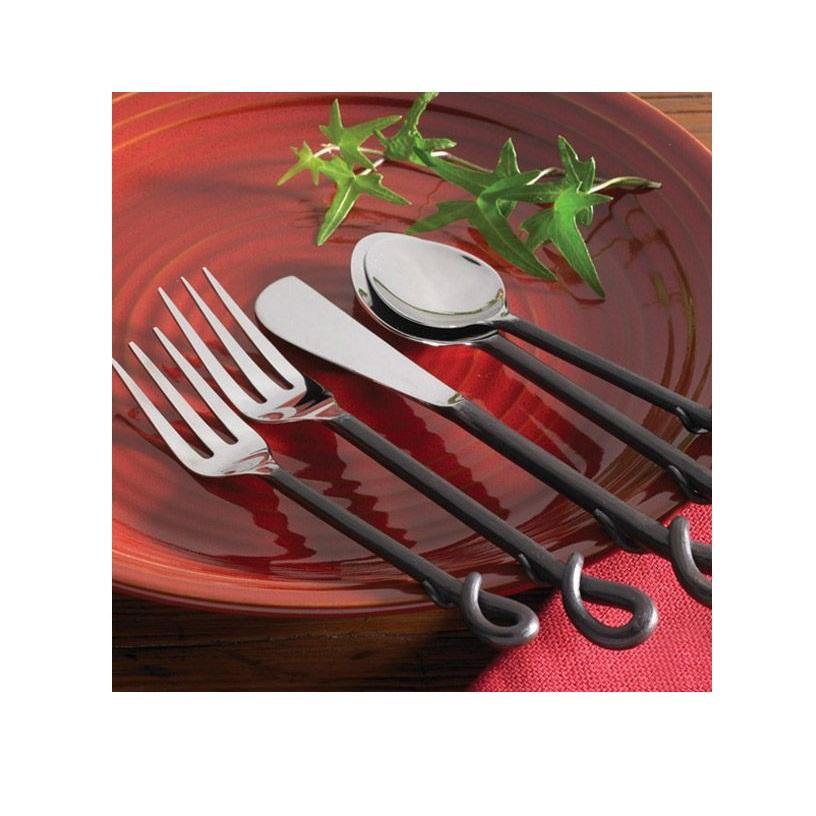 Unique Metal Flatware Sets with Mirror Polish for Hotel Stainless Steel Twisted Cutlery Sets with Black Antique for Home