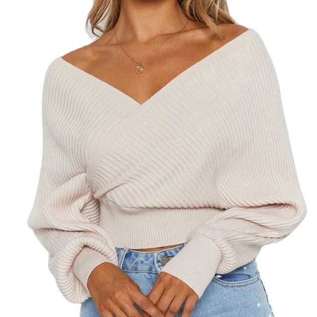 Pull pour femmes, Unique, épaules dénudées, manches chauve-souris, croisé, vêtements pour filles, pull sexy à tricot uni, court