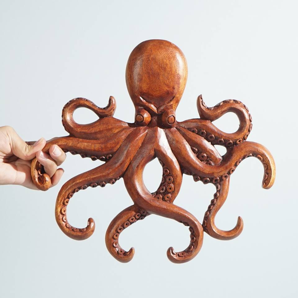 Unique showpiece hand-carved wood animals for home decor attractive wooden manta ray figure