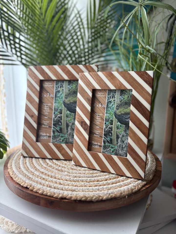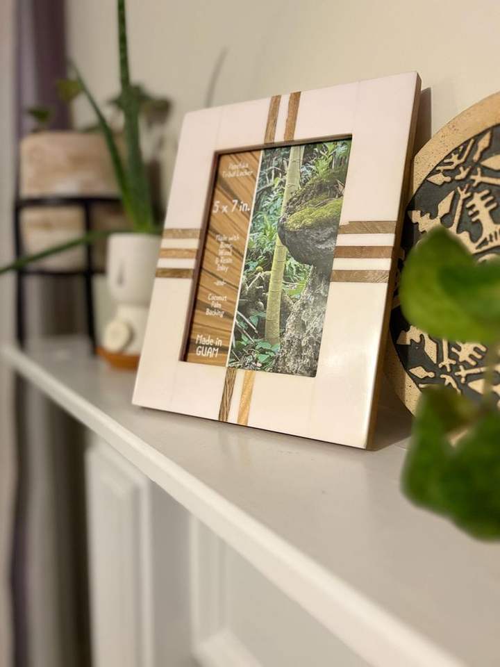 Cadre photo au style unique avec incrustation en résine et finition brillante en MDF, au meilleur prix.