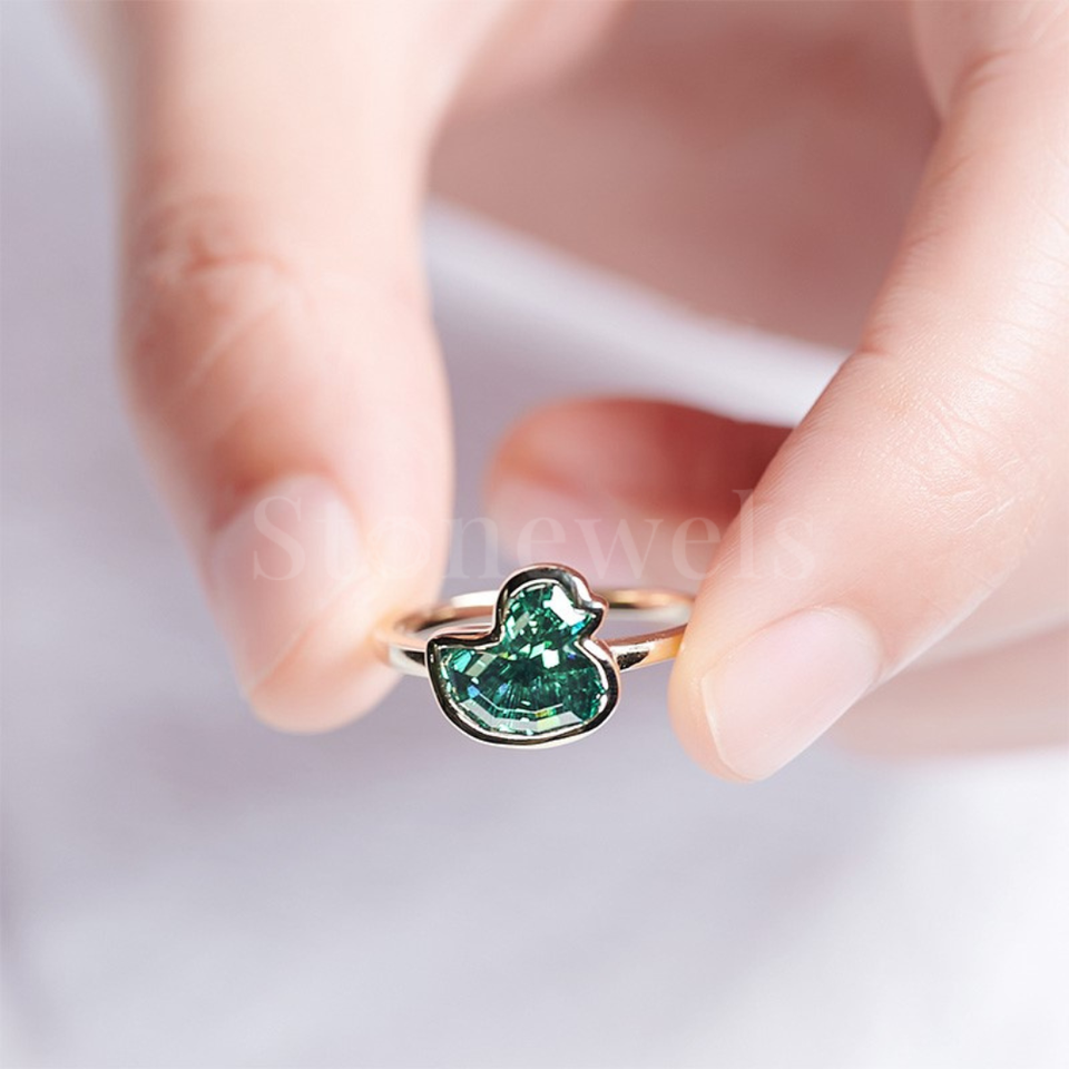 Bague en Moissanite Unique en Forme de Canard Or et Argent, Bijou Tendance pour Homme et Femme, Plaqué Rhodium Original, Idéale pour Fêtes et Mariages