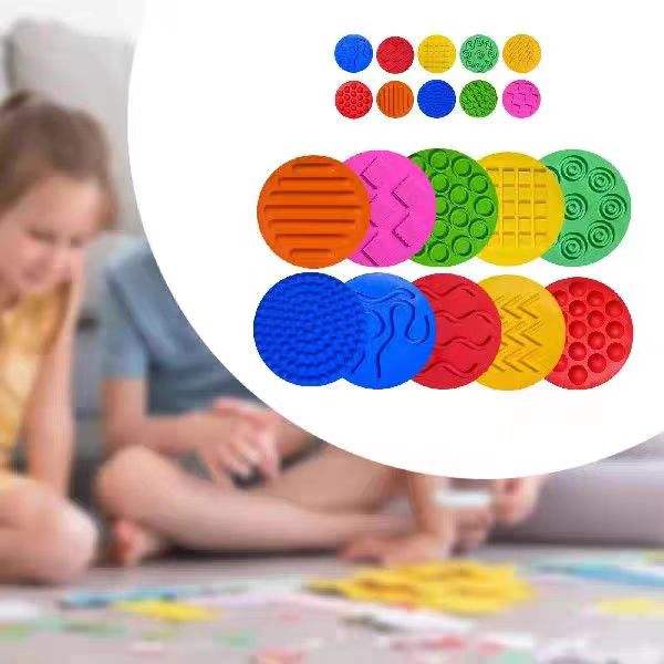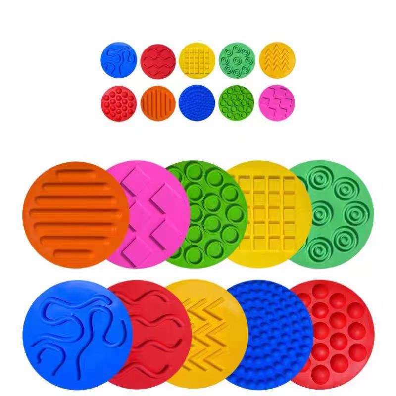 Jeu de 10 Carreaux de Sol Sensoriels en Silicone pour Apprentissage, Jouets Sensoriels Tactiles, Boîte Autiste Emballée, 2 à 4 Ans, 5-7 Ans, Unisexe
