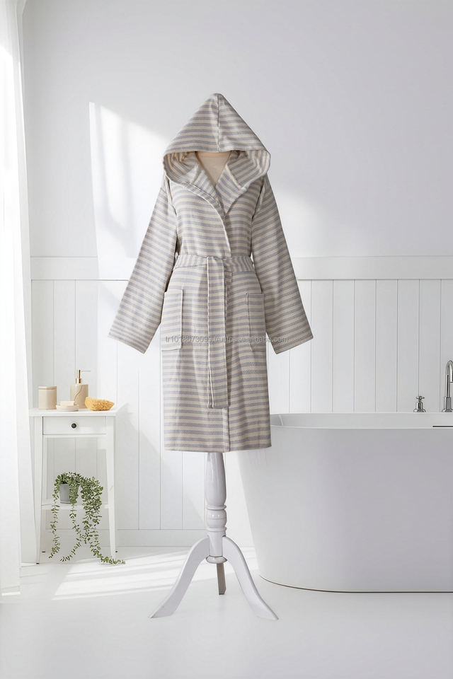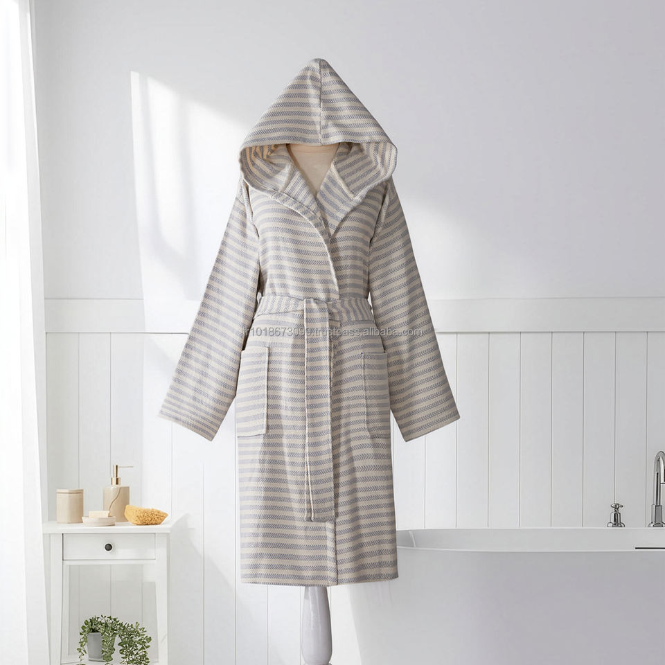 Unisex 100% Cotton Bathrobe Best Seller Quick Dry Summer Sleepwear Breathable Woven Fabric Light Weight All Year ODM Made Turkey