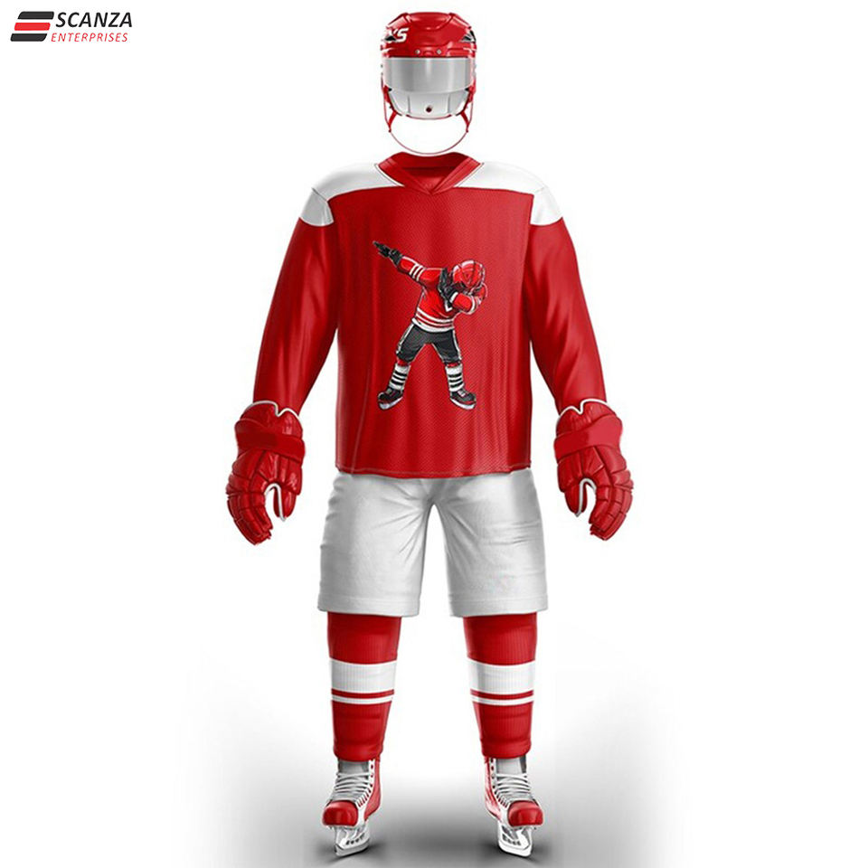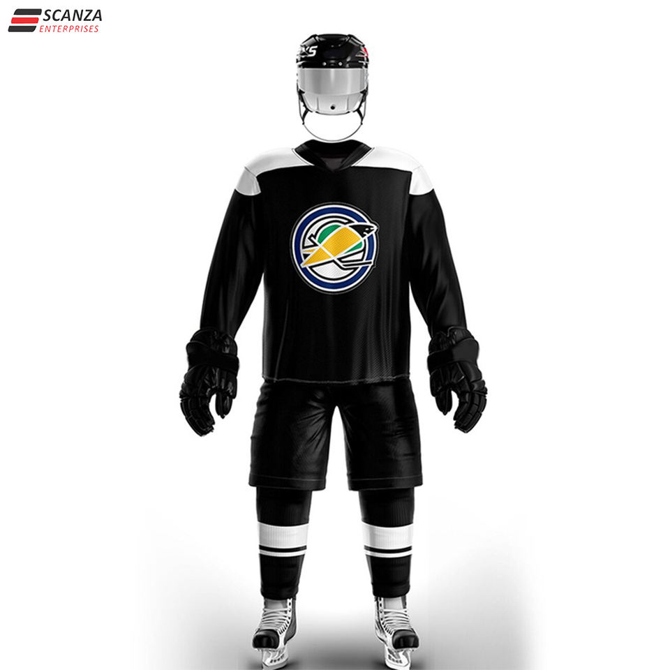 Tenue de Hockey sur Glace 100% Polyester Personnalisée pour Équipe, Vêtements de Sport OEM, Ensemble Imprimé, Brodé et Sublimé, Séchage Rapide, Respirant