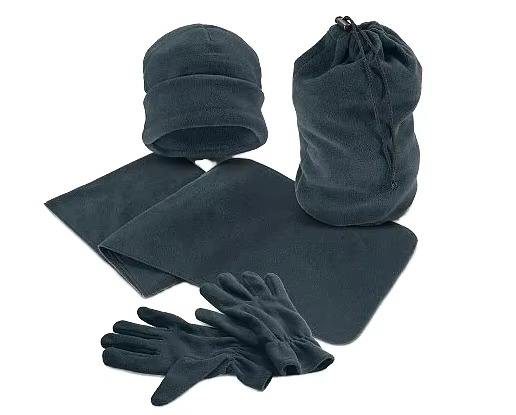 Ensemble écharpe et bonnet unisexe 4 pièces en polaire 100 % polyester, brodé, chaud, anti-boulochage, avec sac à cordon long