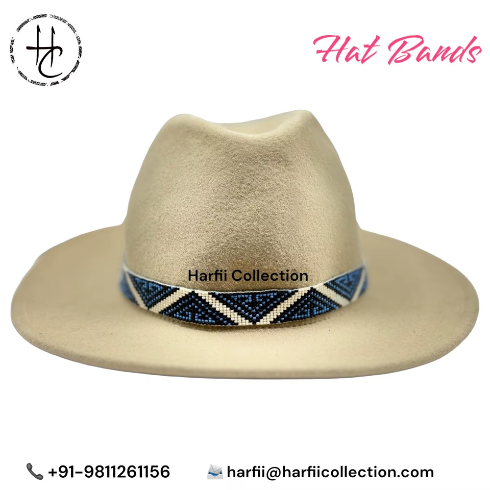 Bandeau de chapeau unisexe fait main perlé de 21 pouces, largeur 1 pouce, en cuir, style western cowboy, accessoire pour chapeau Fedora, style extérieur