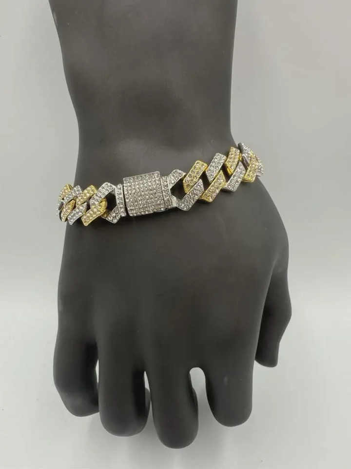 Bracelet Hip Hop Unisexe en Argent Sterling 925 Style Diamant Cubain Lien Bracelet Moissanite Glacé Complet Multicolore Pierre