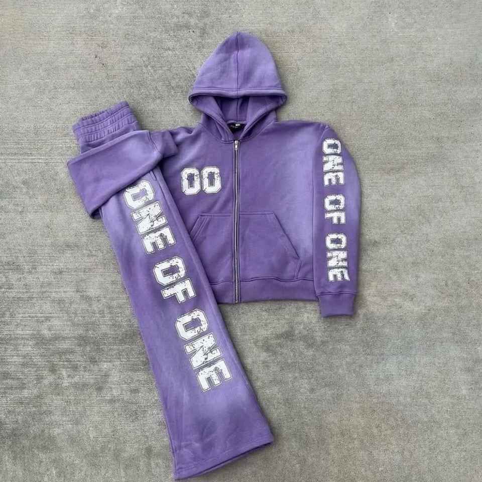 Ensemble de survêtement unisexe délavé à l'acide avec impression sérigraphiée pour hommes et femmes, de haute qualité