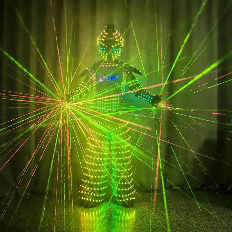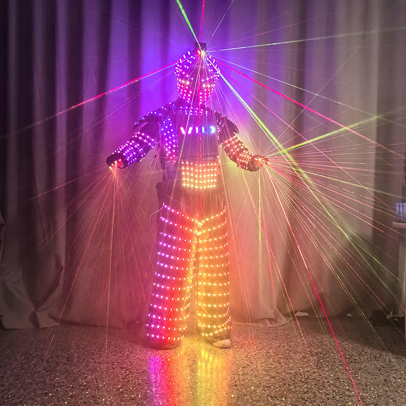 Costume de scène unisexe pour adulte avec impression lumineuse en polyester/rayonne, casque laser et gants colorés pour bar KTV