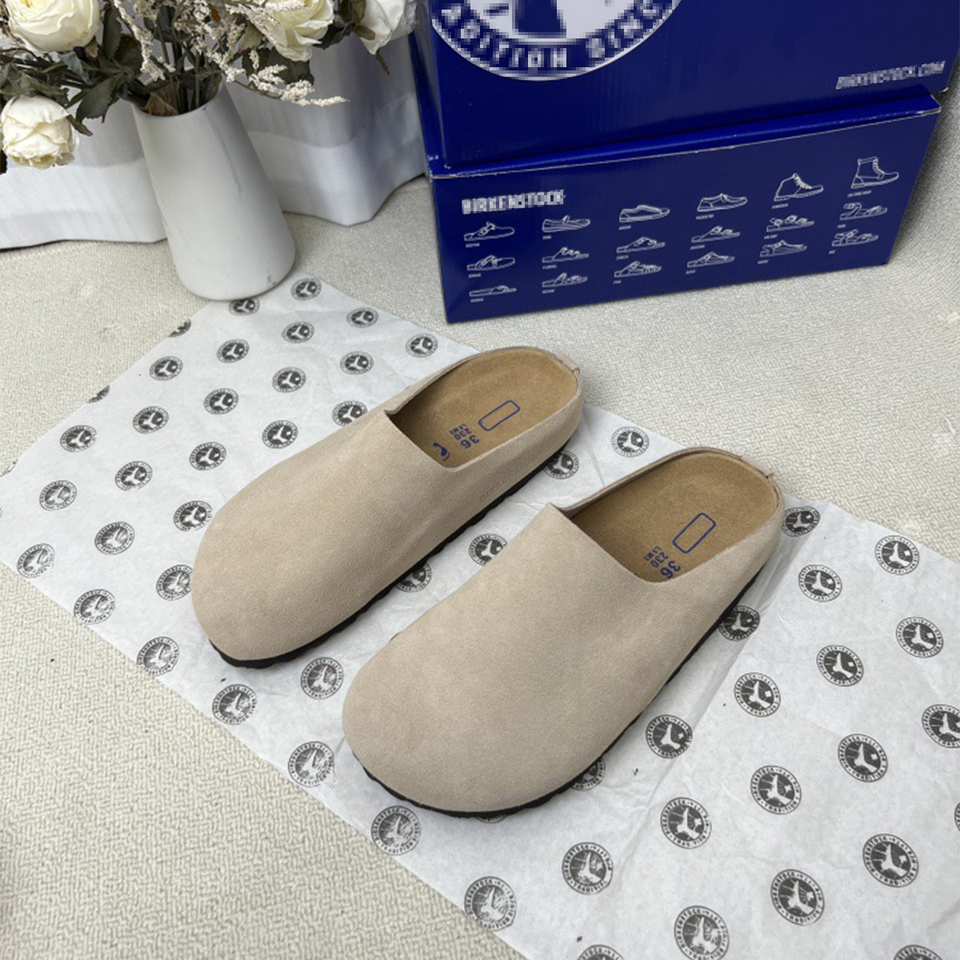 Sandales unisexes en daim et liège avec soutien de la voûte plantaire, doublure en cuir véritable, pantoufles confortables antidérapantes à enfiler pour la maison