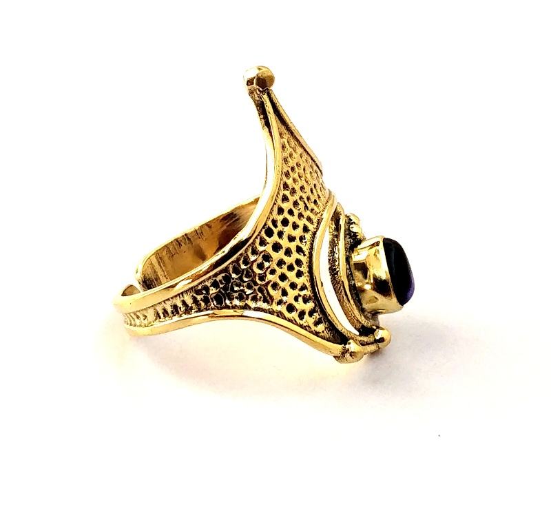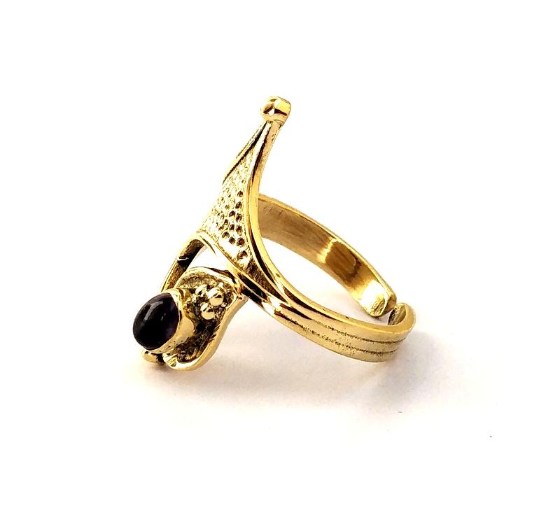 Bague unisexe en pierre d'améthyste de style bohème Bague en laiton avec incrustation de pierres précieuses pour cadeau d'anniversaire