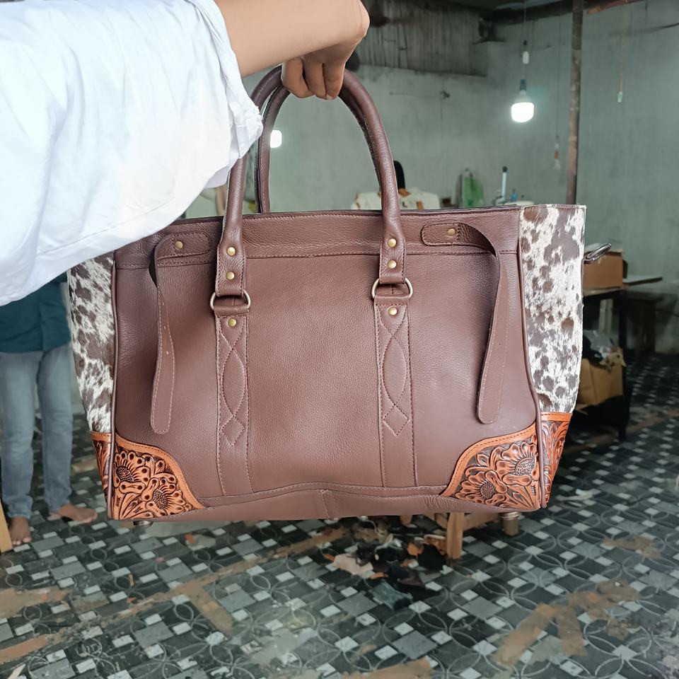 Sac de voyage en cuir véritable de style bohème unisexe avec fleurs aztèques, sac de week-end, sac à franges, mode occidentale, automne, personnalisé