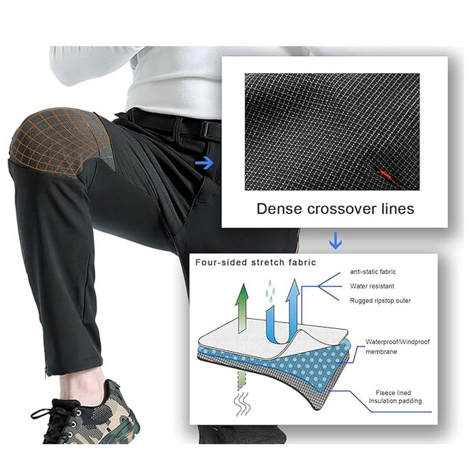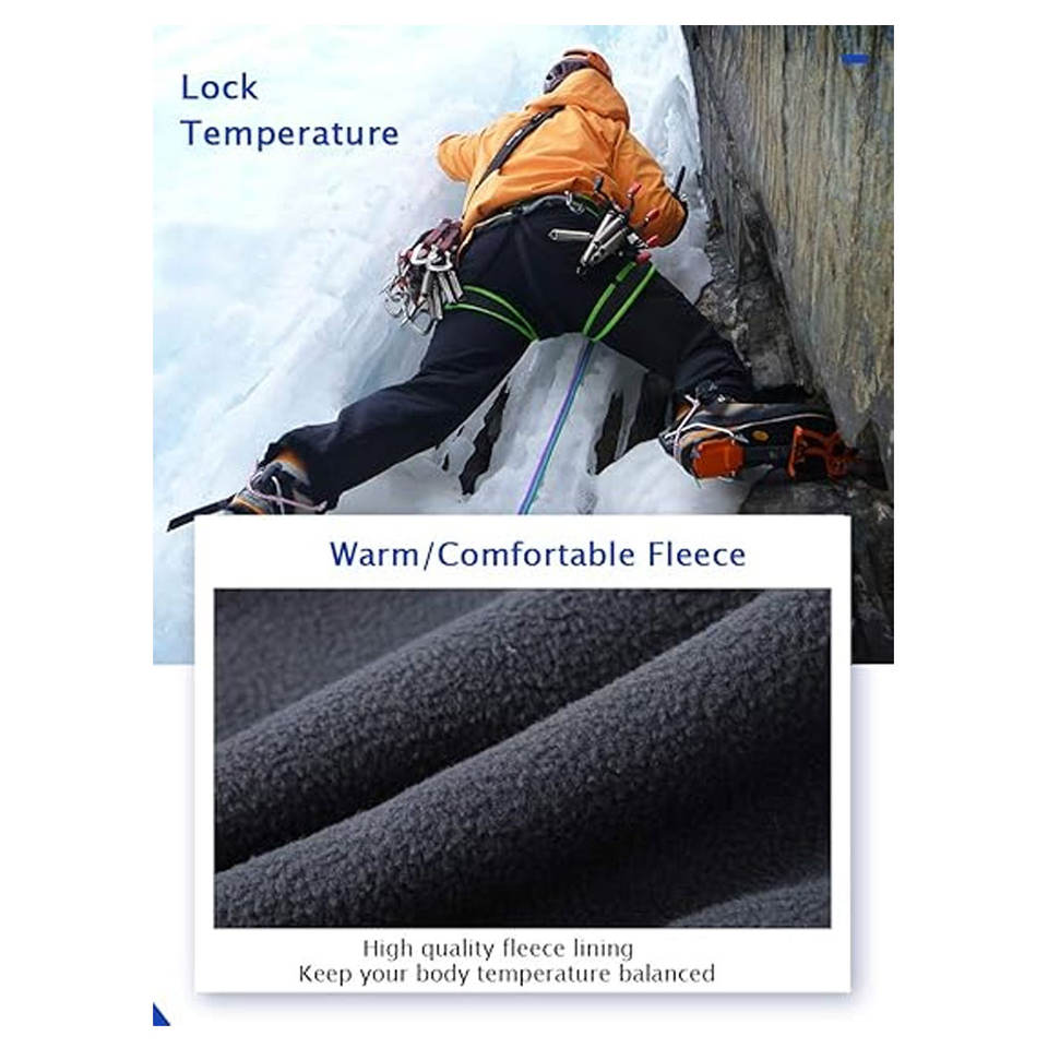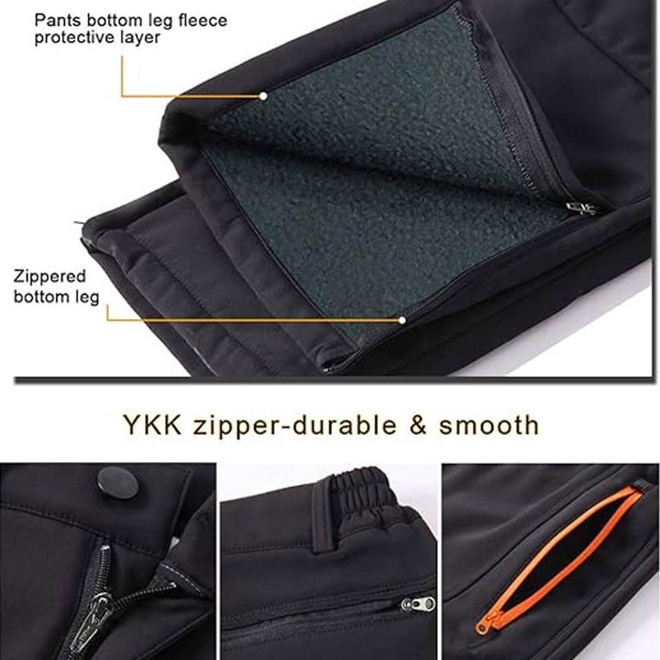 Pantalon de ski softshell unisexe respirant imperméable 10 000 mm pour la randonnée en plein air, doublé en polaire, équipement de sport d'hiver, bouton
