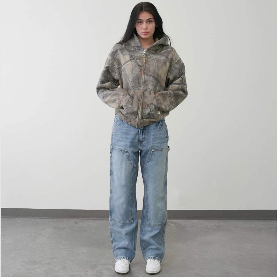 Unisex Camo Zip-Up Hoodie - Vintage-Inspired Design, 100% Brushed Cotton, True-to-Size Fit, Durable Build, and Machine Washable