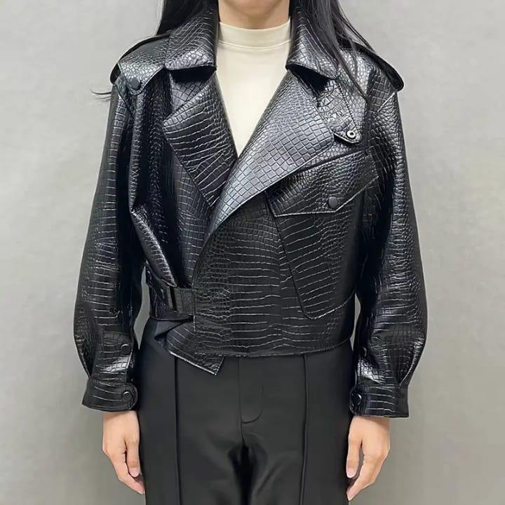 Unisex Casual Cow Skin Canvas Leather Jacket Black for Embossed Biker Style Vintage Slim Fit Winter Waterproof Coat