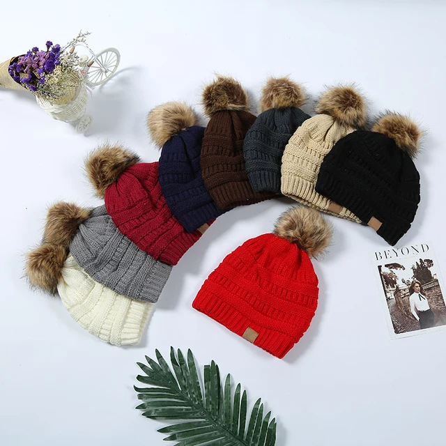 Unisex Casual Winter Autumn Knit Hats Set High Quality Comfort Soft Ribbed Beanies with Stylish Woven Pom Pom Bows for Travel