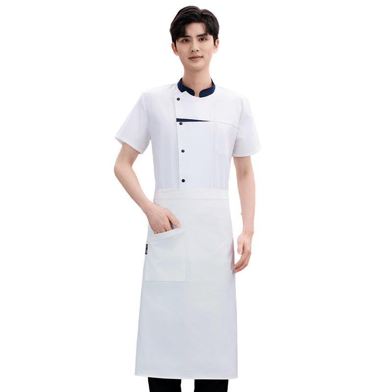 Uniforme de chef unisexe Manteau à manches courtes en coton/polyester avec logo Veste de chef pour restaurant et bar