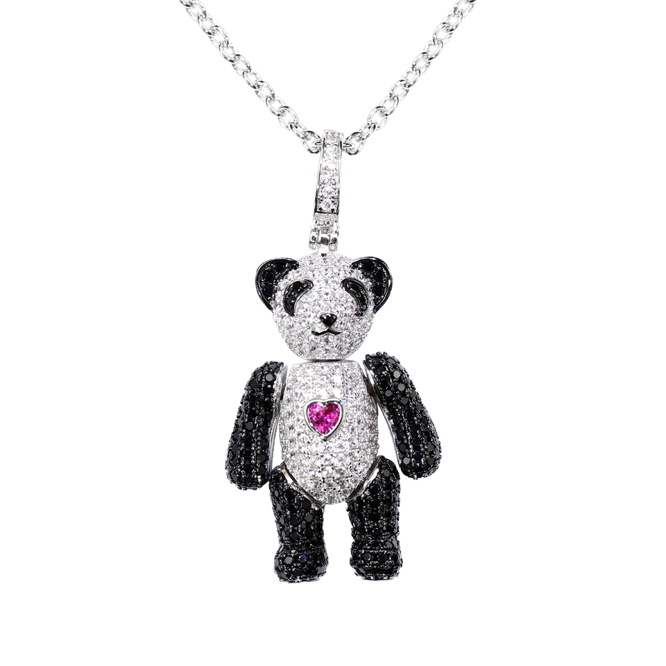 Collier classique unisexe avec zircon coloré créé en laboratoire, pendentif ours en trois dimensions, couple, plaqué rhodium, chaîne à maillons