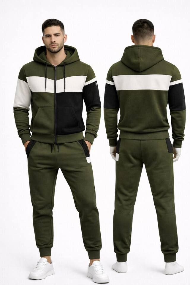 Ensemble de survêtement unisexe color block, sweat à capuche zippé et pantalon de jogging assorti, style streetwear