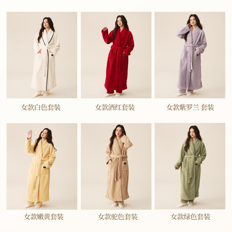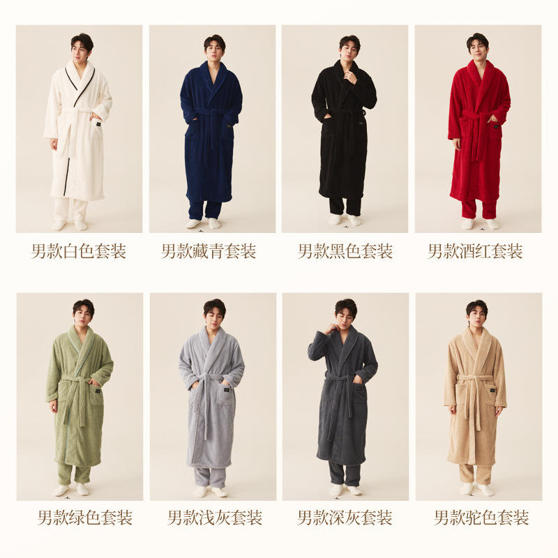 Robe en polaire corail unisexe, longue robe de bain en peluche pour hommes et femmes, couples assortis, kimono thermique épais, vêtements de détente
