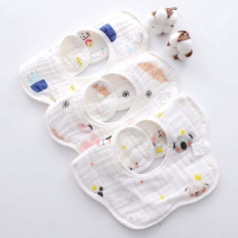 Bavoir en coton unisexe pour bébé, doux, en fil, imperméable, motif floral, bandana avec fermeture à bouton, bavoirs d'alimentation en coton