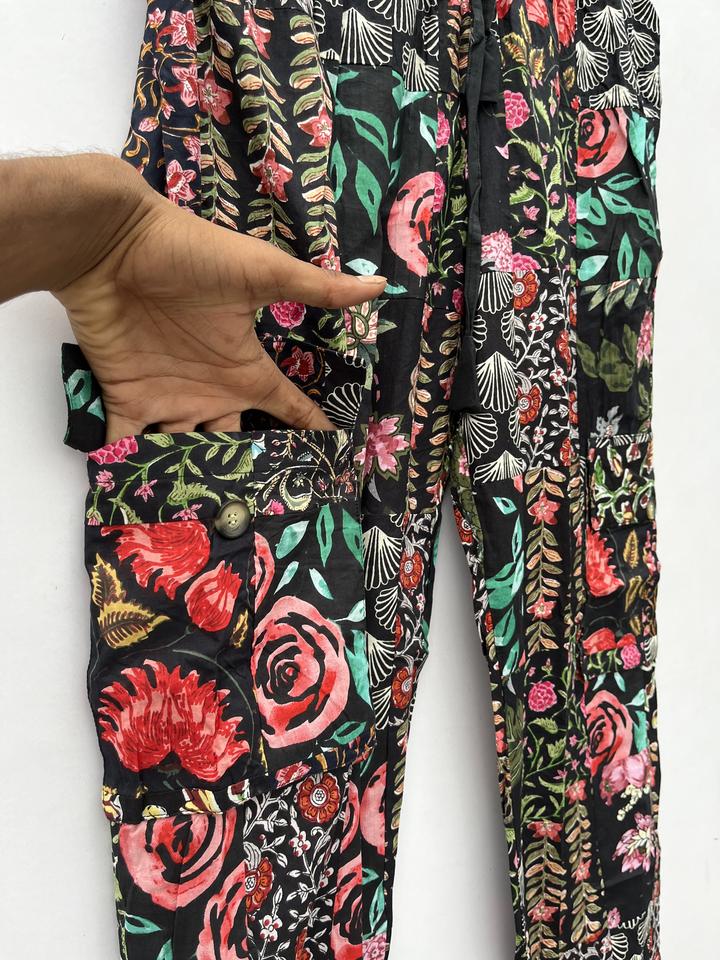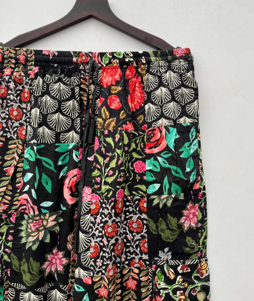 Unisex Cotton Cargo Patchwork Trousers Vintage Indian Style Boho Hippie Yoga Pants with Logo for All Seasons