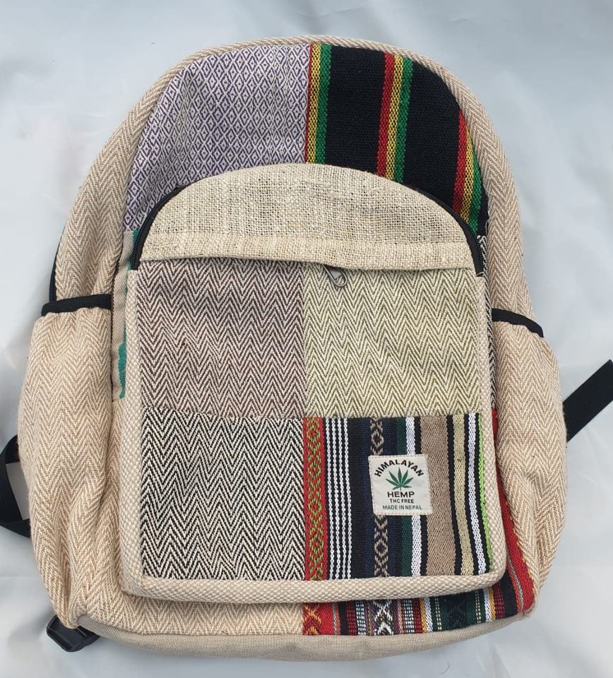 Unisex Cotton Mix Hemp Casual Sports Backpack Anti-Theft Travel External Frame with String Closure Shoulder Strap Fabric Lining