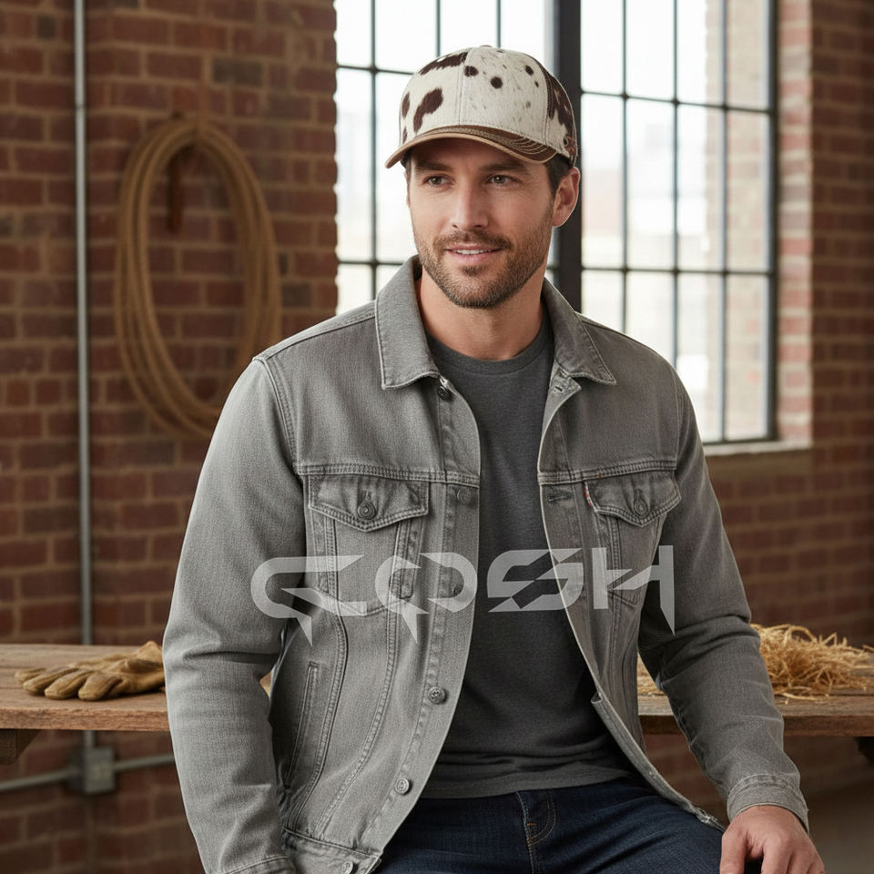 Nom du produit:Casquette de baseball en cuir avec poil de vache