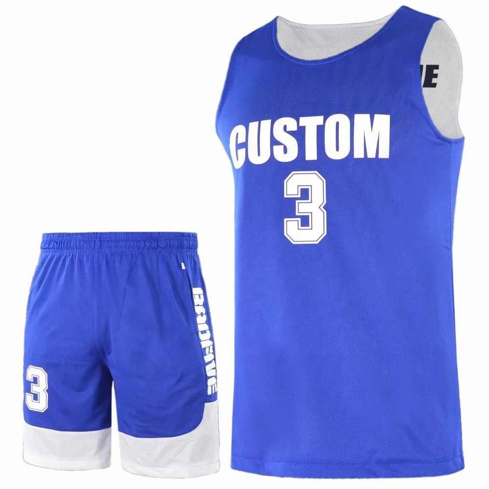 Ensemble de maillot de basket-ball bleu unisexe personnalisé vêtements de sport en maille de polyester à séchage rapide XL Plus Size respirant Sublimation Logo Design