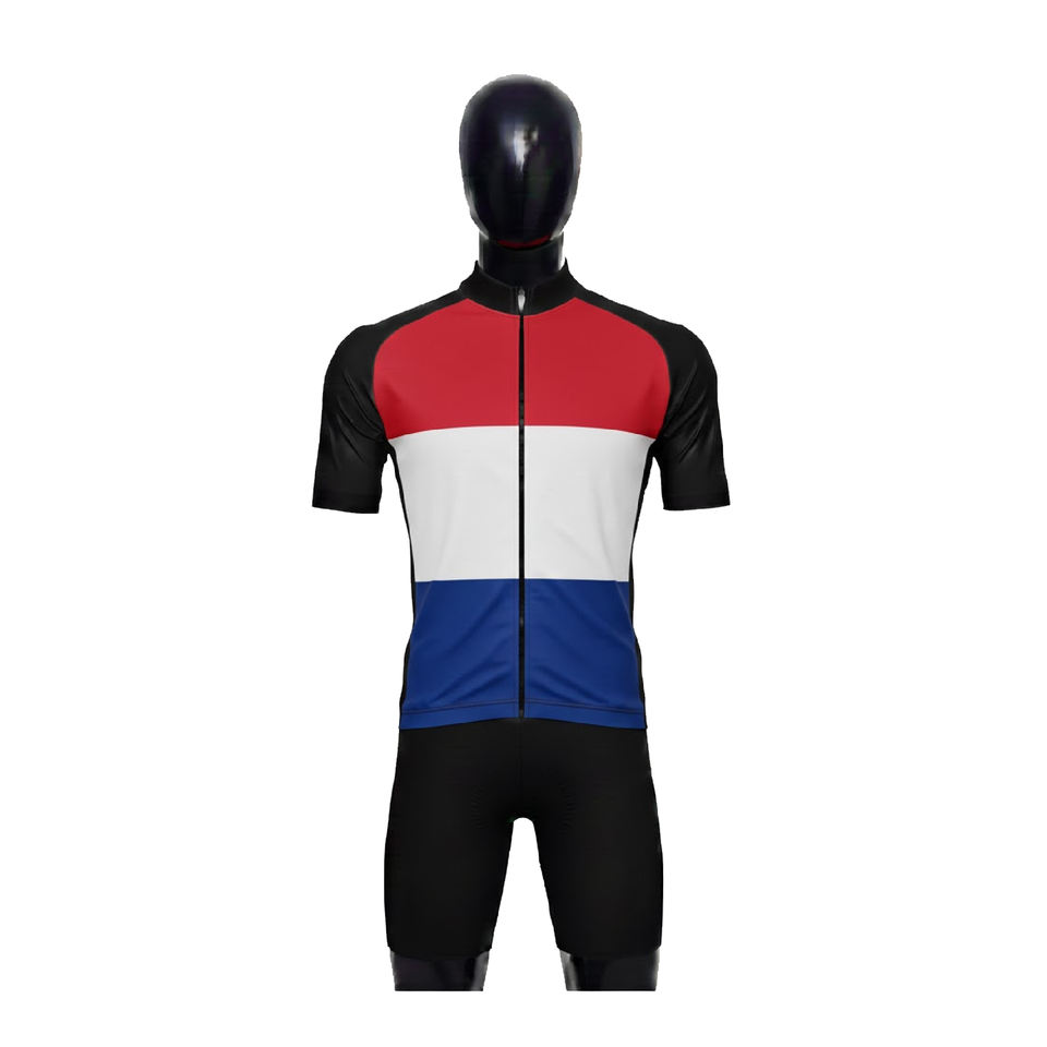 Maillot de cyclisme unisexe personnalisé à manches courtes avec fermeture éclair, séchage rapide, impression par sublimation, haut de vélo, ensembles de cyclisme OEM pour l'été