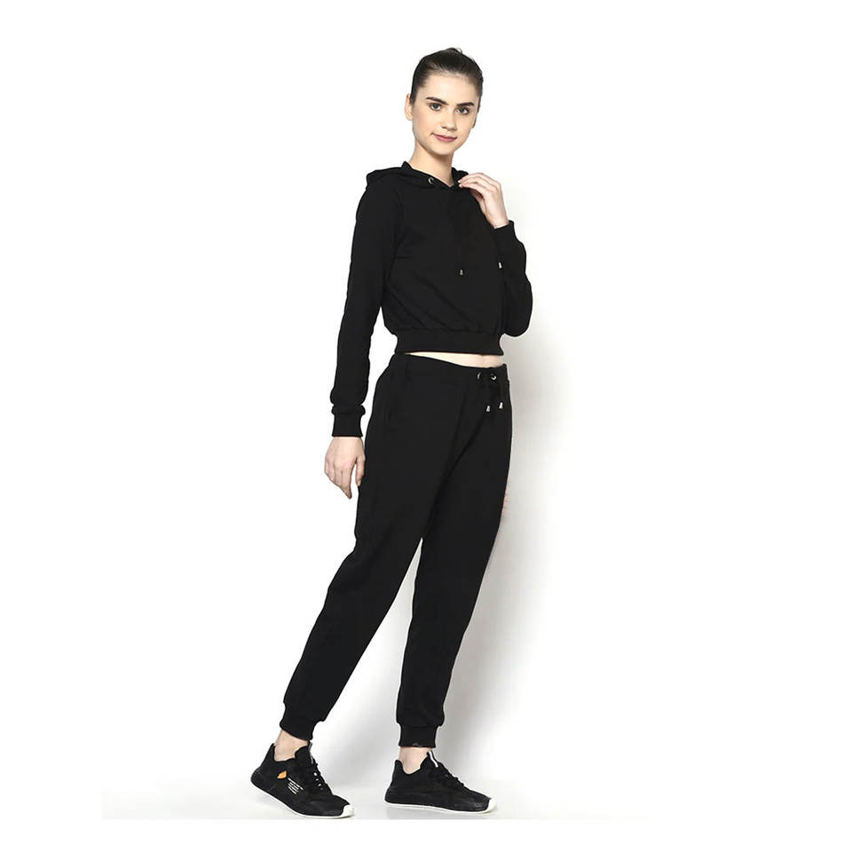 Survêtement unisexe à logo personnalisé Survêtement 2 pièces en coton à col rond Vêtements de sport respirants pour hommes et femmes de couleur noire