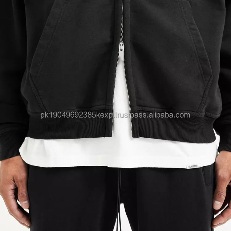 Sweat à capuche zippé unisexe avec logo personnalisé Sweat-shirt court oversize pour homme à double fermeture éclair Brodé de couleur unie pour l'hiver