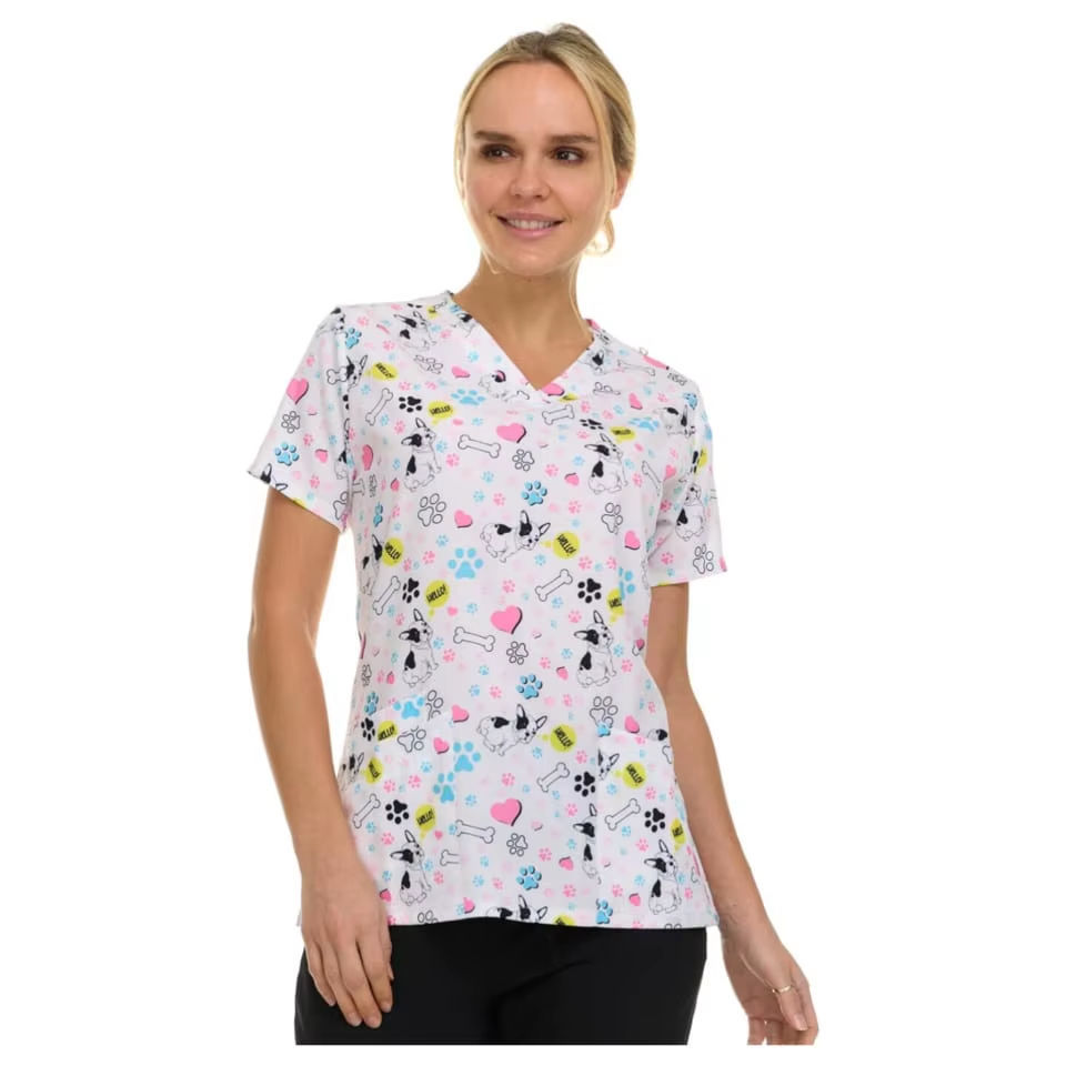 Uniformes hospitaliers à col en V sur mesure unisexe, quatre poches, sur toile imprimée, blouses d'allaitement pour femmes