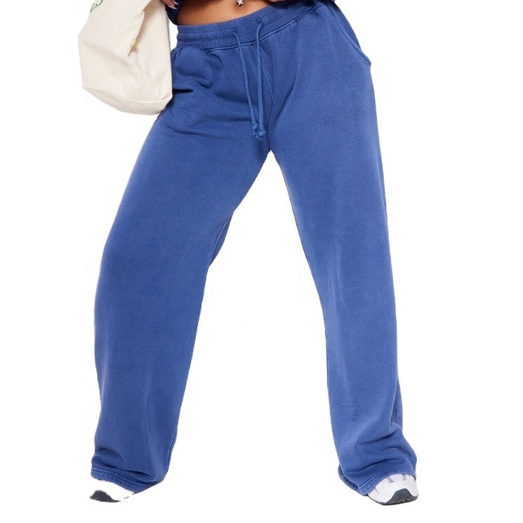 Pantalon de survêtement unisexe personnalisé, coupe droite, jambe large, coton, délavage acide, effet délavé, peint, style urbain, séchage rapide