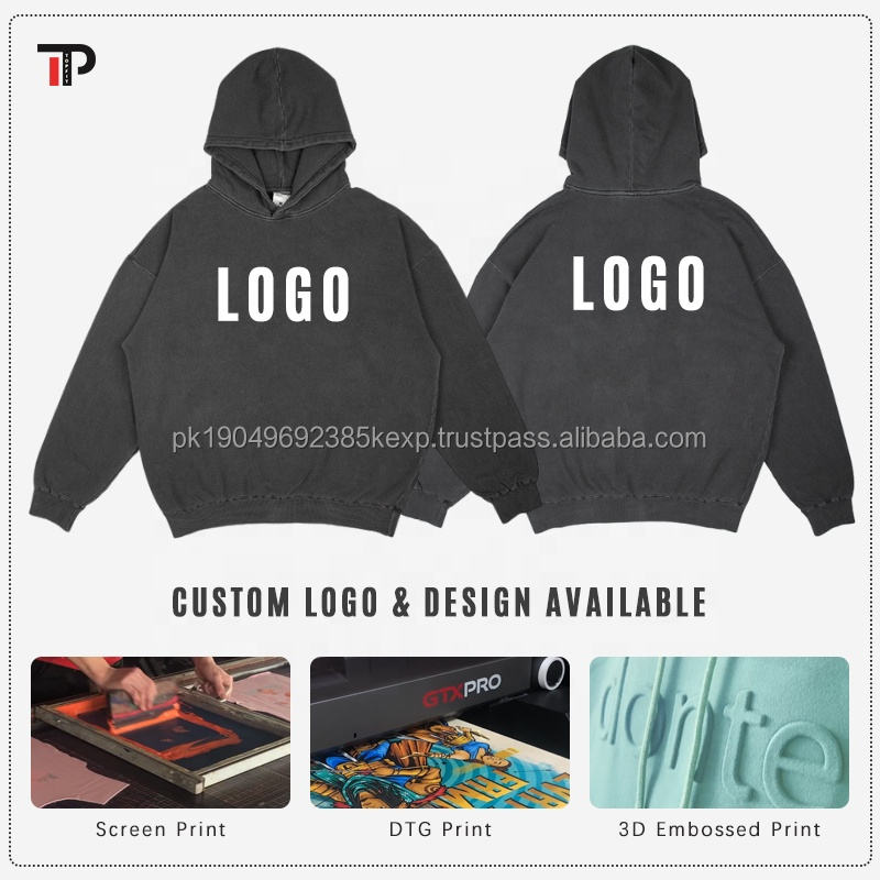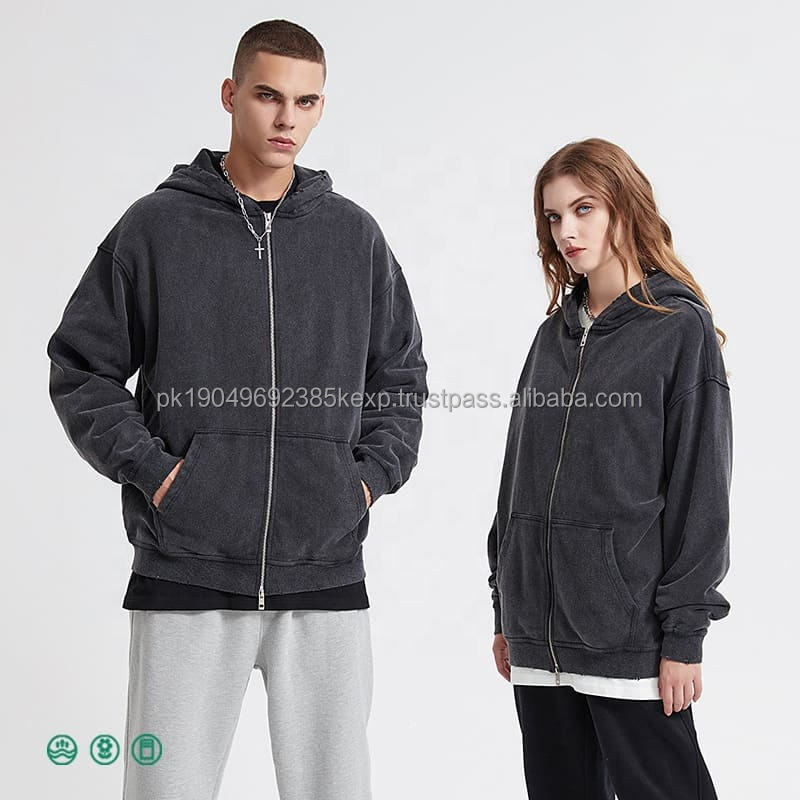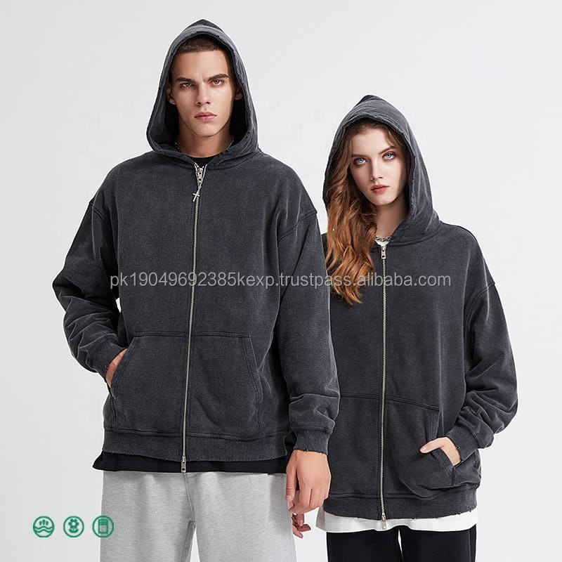 Unisex Custom Zip up Garment Dyed Hoodies Heavyweight French Terry Acid Wash Distressed Oversize Vintage Hoodies Loose Style