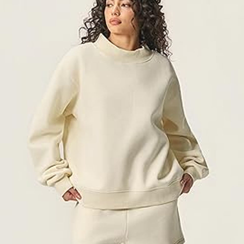 Sweat-shirt d'hiver unisexe personnalisé avec patch brodé, coupe classique, réversible, col roulé, doublure en molleton 100% coton, respirant