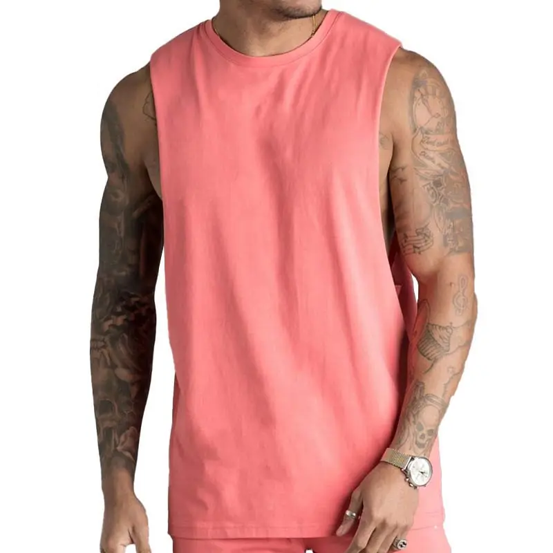 Débardeur de course respirant personnalisé unisexe 100% coton, débardeur d'été à col découpé, t-shirt OEM ODM, taille plus, sans manches pour hommes