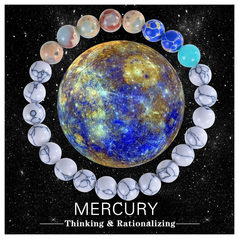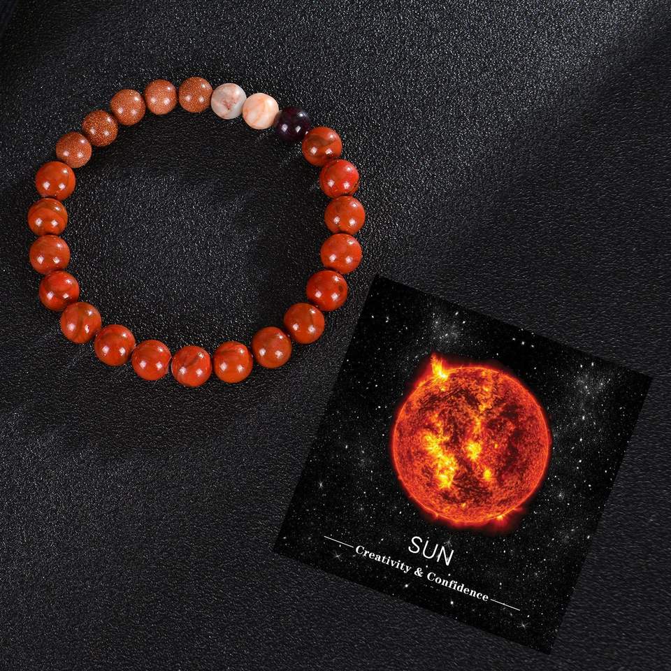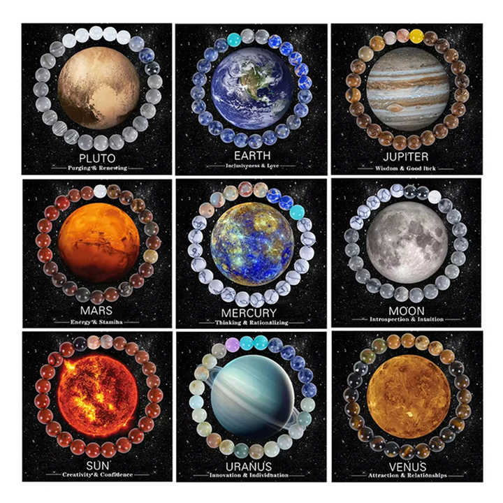 Bracelet élastique en pierre naturelle unisexe Huit planètes Cristal naturel Bracelet en pierre semi-précieuse Cadeau commémoratif