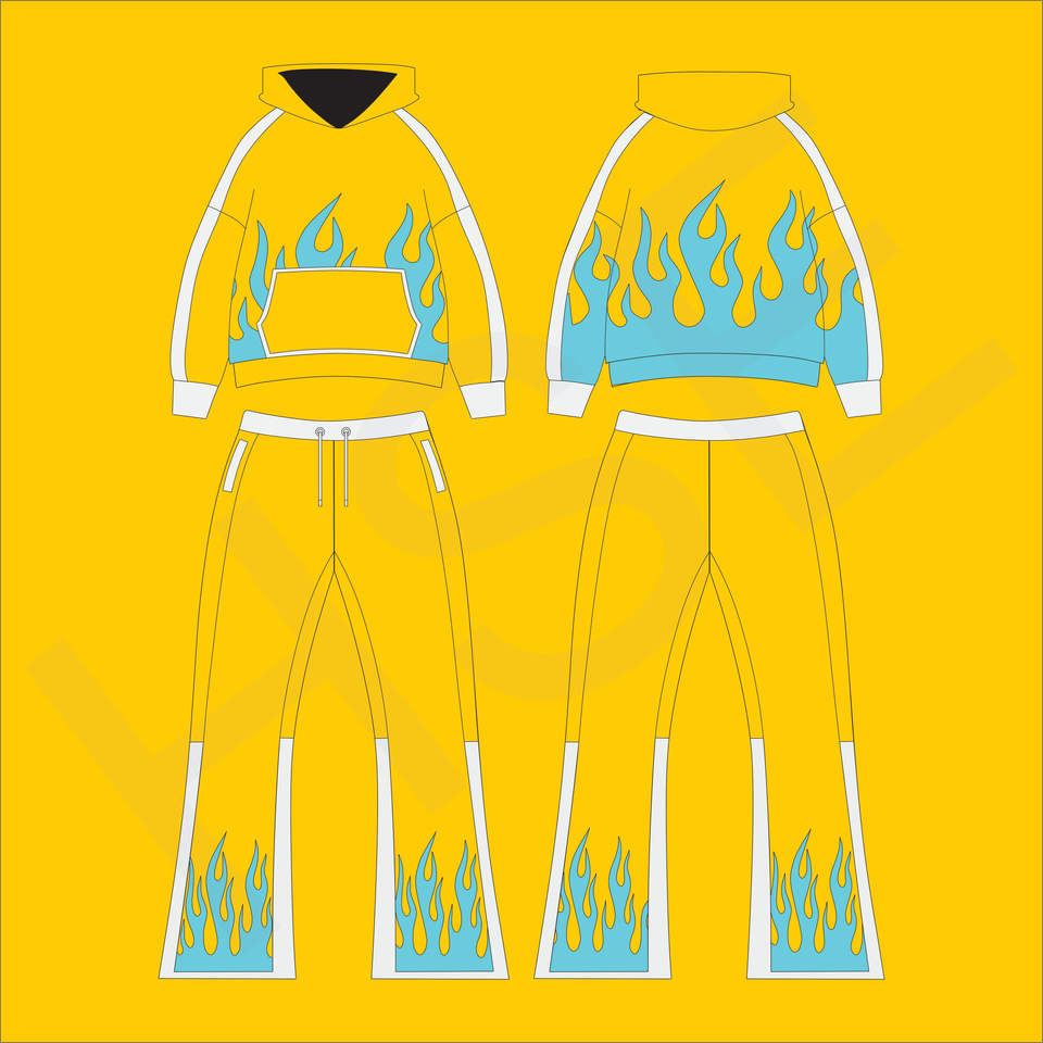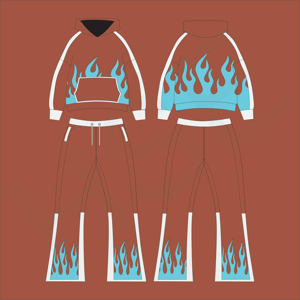 Survêtement unisexe avec motif flamme | Ensemble de vêtements de sport tendance avec logo personnalisé