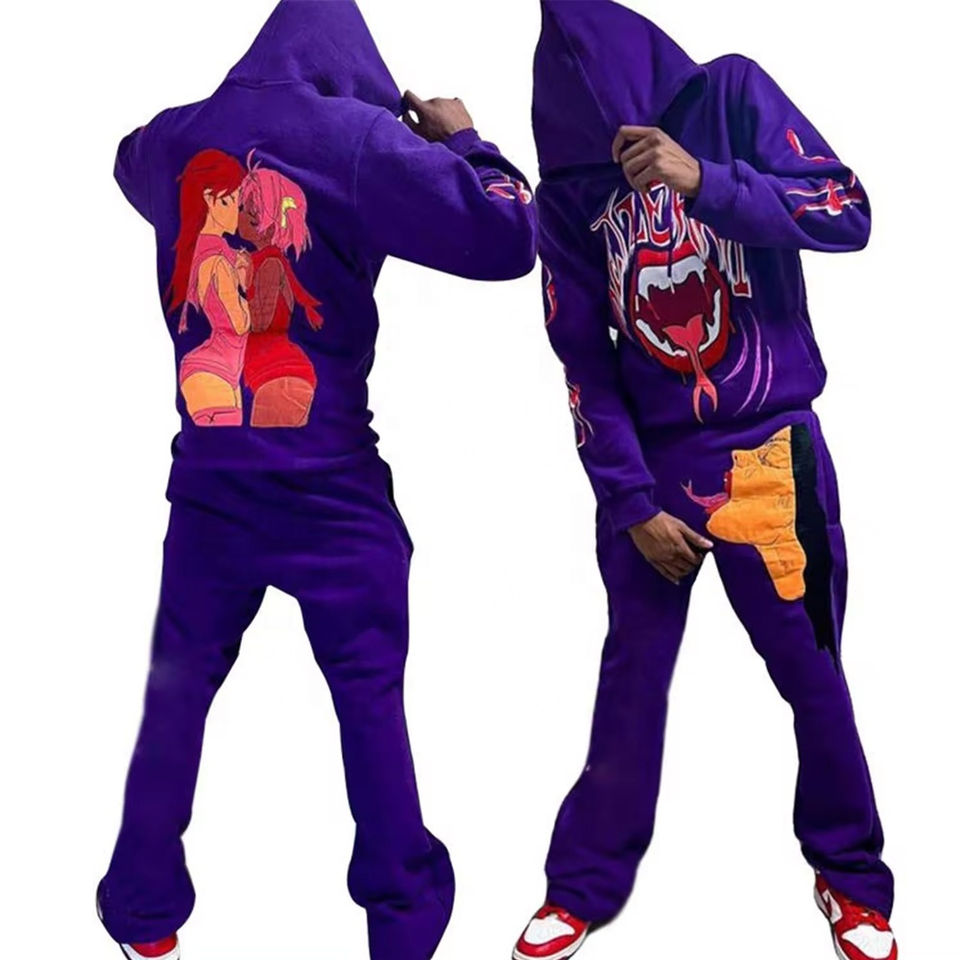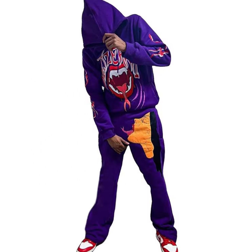 Ensemble survêtement évasé unisexe avec imprimé bouffant Survêtement polaire surdimensionné XL à ourlet brut de haute qualité Logo personnalisé pour l'été