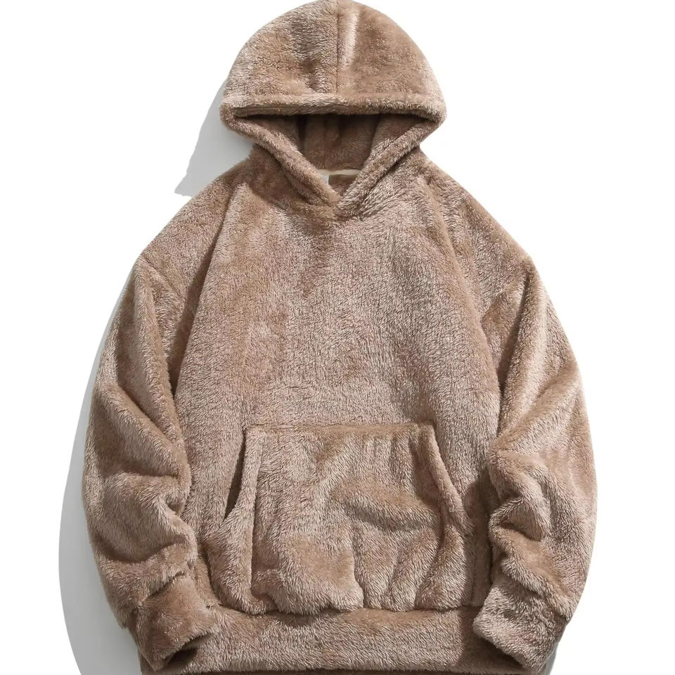 Unisex Fluffy Hooded Sweatshirt Custom Soft Fleece Brown Faux Fur Hoodies Sweaters Pullover Zipper Winter Size XL