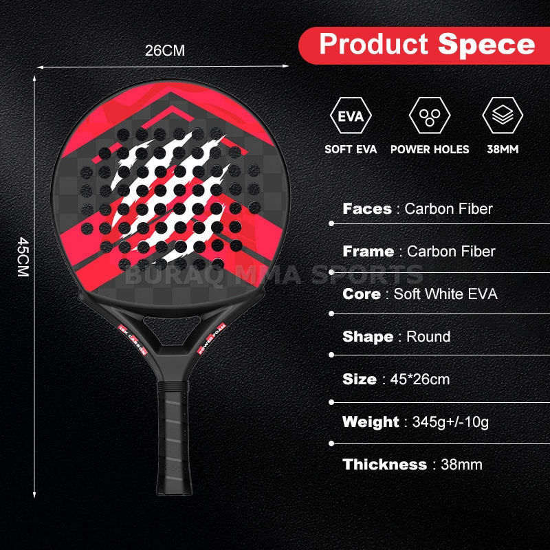 Raquette de beach tennis unisexe entièrement en carbone, noyau en EVA souple avec sac de transport en nylon